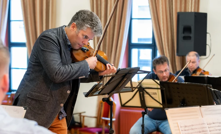 Közös zenekari próba Kelemen Barnabás hegedűművésszel