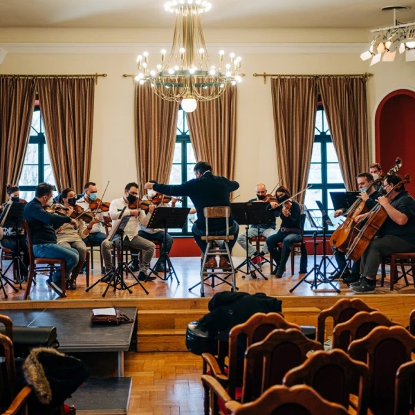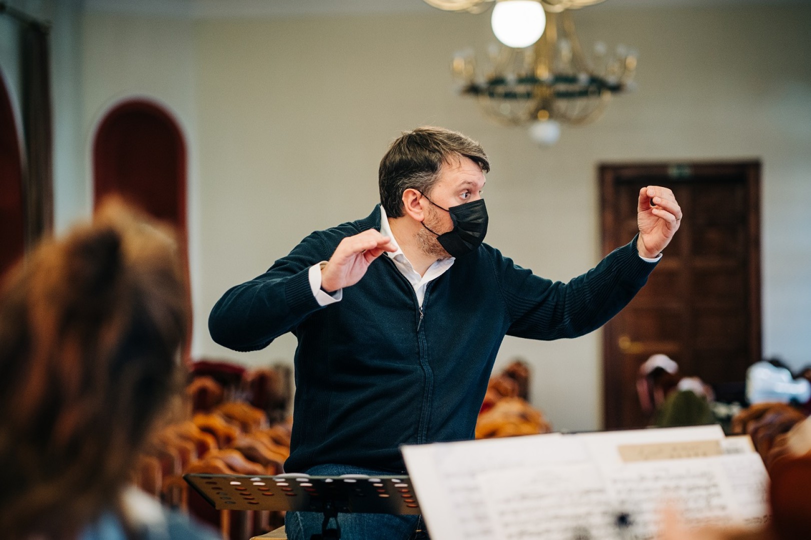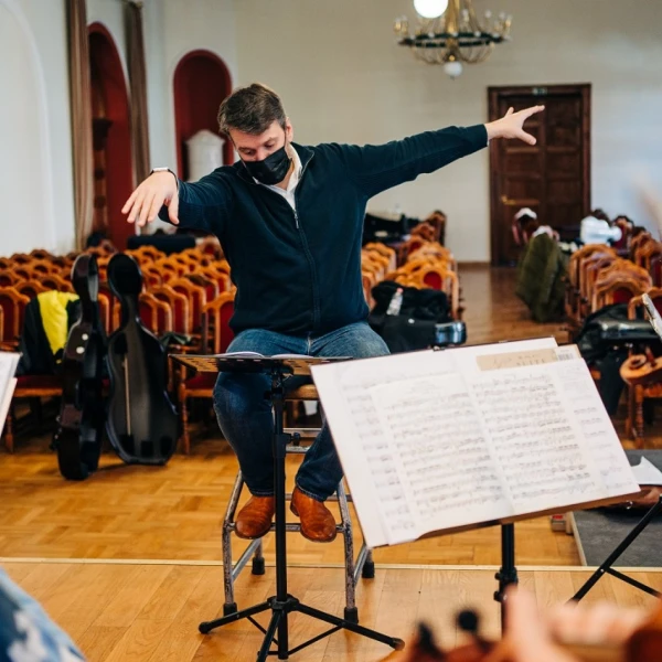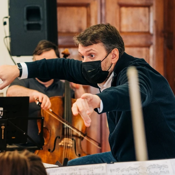 Concert rehearsal with conductor, Mathieu Herzog